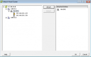 Now select the “HA-DRS” cluster and click attach.